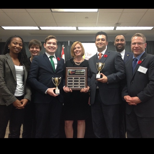 Pictured left to right: Coach Michelle Pinto, Organizer Fallon Burns, Finalist Reid Jackson, Presenter Michelle Haigh, Finalist Peter Balatidis, Organizer Doug Taylor